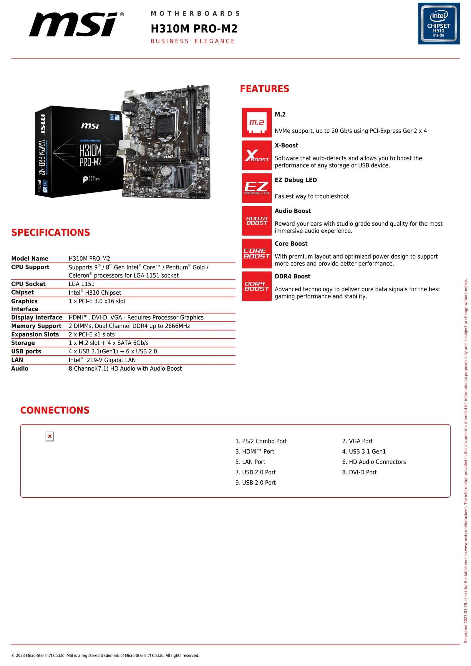 Processor Support: Supports 9th / 8th Gen Intel® Core™, Pentium® Gold, and Celeron® processors for LGA 1151 socket