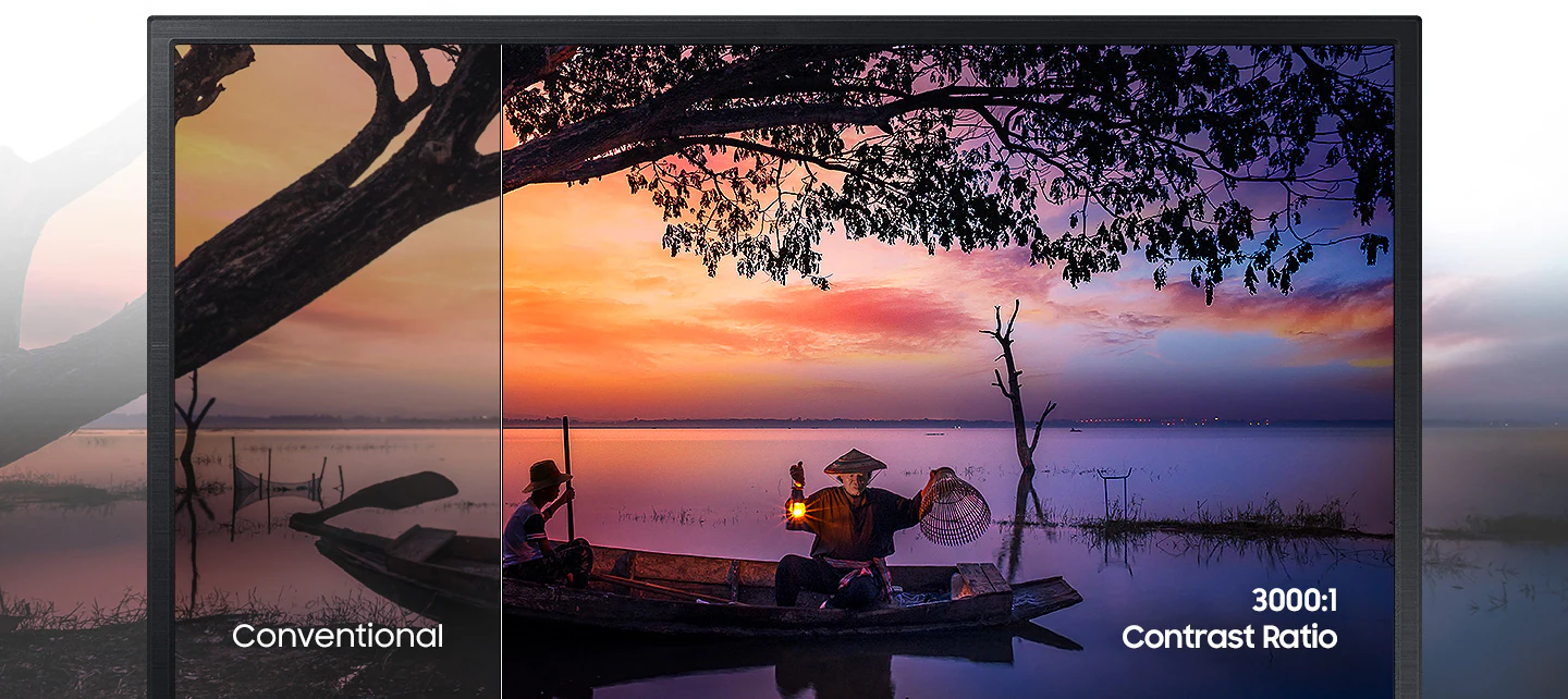 Every scene, incredibly defined. Samsung's innovative VA Panel technology delivers an outstanding 3000:1 contrast ratio with deeper blacks and more brilliant whites. Minimal light leaks from corner to corner, so even very dark or bright images are crystal clear on your screen.